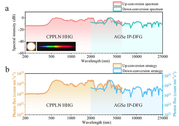 非线性频率上、下转换协同实现高性能深紫外-远红外全谱段白光强激光